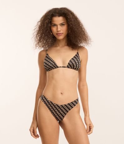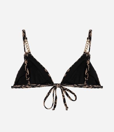 Biquíni Top Cortininha em Microfibra com Estampa de Correntes e Aviamentos
