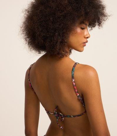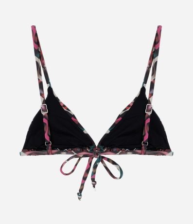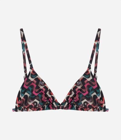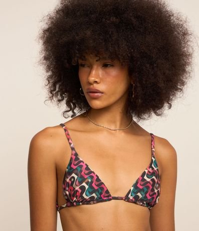 Ref: Biquíni top cortininha com alcinhas finas reguláveis e com bojos removíveis além de amarração nas costas e estampa geométrica. Confeccionado em microfibra leve. Peça avulsa.
