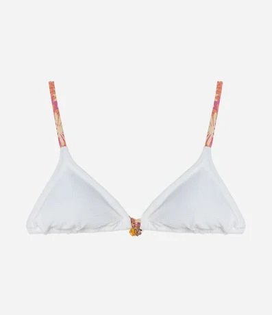 Ref: Peça avulsa de biquíni confeccionada em microfibra texturizada e sem estampa. O top cortininha tem alças estampadas e aviamentos fofos no centro do busto.