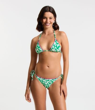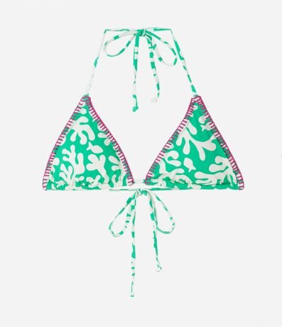 Ref: Biquíni top cortininha feminino, confeccionado em poliamida, com detalhe de pespontos contrastante na borda e estampa algas.