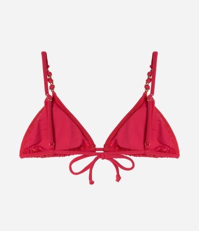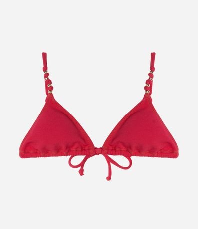 Ref: Peça avulsa de biquíni feminino, modelo top cortininha, com alças finas reguláveis e amarração nas costas. Sem estampa, possui textura e detalhe com metal nas alças.