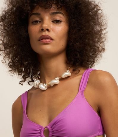 Peça avulsa de biquíni confeccionada em microfibra sem estampa. O top tem alças largas reguláveis, amarração nas costas, amarração frontal vazada e aviamento metalizado em forma de estrela do mar.