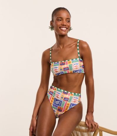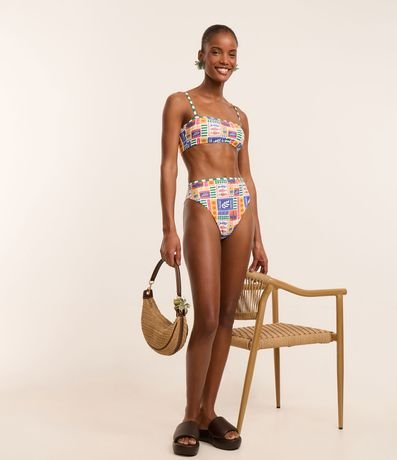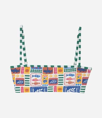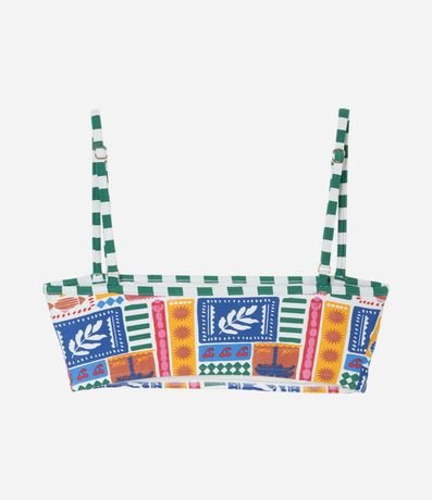 Ref: Peça avulsa de biquíni confeccionada em microfibra. O top modelo faixa/bandeau tem decote reto e estampa tropical com partes listradas. As alças são finas, fixas e reguláveis.