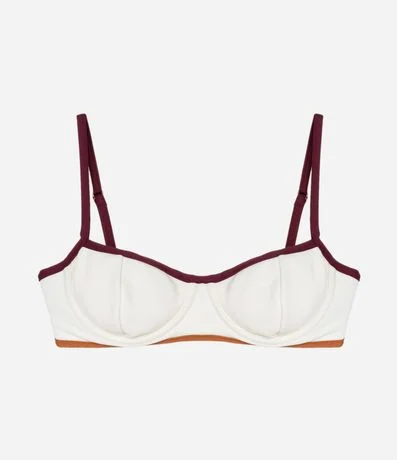 Biquini Top Meia Taça Canelado com Viés Contrastantes