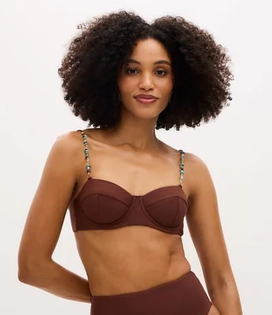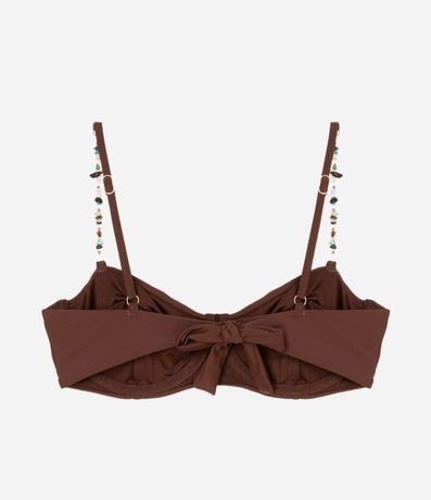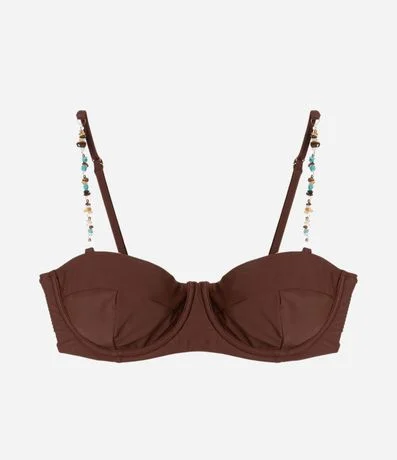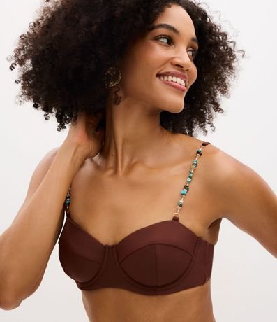 Ref: Biquíni top feminino confeccionado em microfibra. Possui recorte estruturado e bojo estilo meia-taça. Possui alças finas decoradas com miçangas coloridas e ajuste regulável. Nas costas, traz amarração em laço para melhor sustentação e encaixe. Design elegante, com acabamento liso e moderno, ideal para compor looks de praia sofisticados.