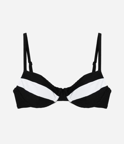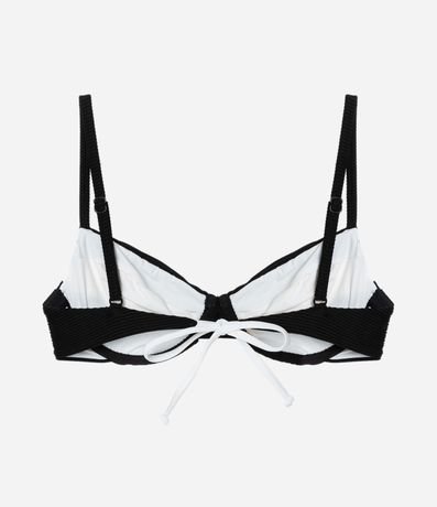 Peça avulsa de biquíni confeccionada em microfibra canelada. O top modelo meia taça tem aro, amarração nas costas, bojos removíveis e alças reguláveis.
