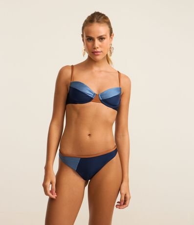 Ref: Peça avulsa de biquíni confeccionada em microfibra com efeito metalizado. O top modelo meia taça tem blocos de cores, bojos removíveis e fechamento nas costas. As alças são paralelas, caneladas e reguláveis.