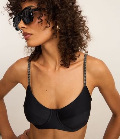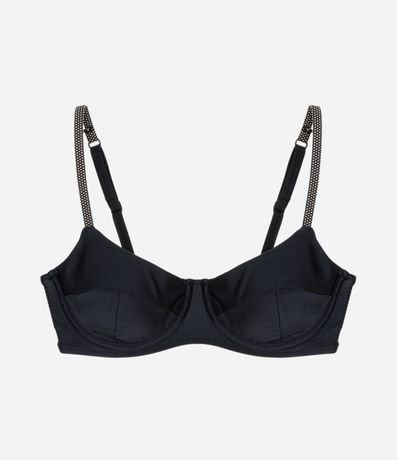 Peça avulsa de biquíni confeccionada em microfibra sem estampa. O top meia taça tem alças elásticas e reguláveis, além de textura diferenciada contrastante.