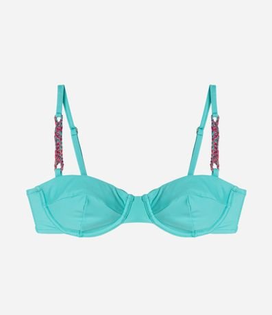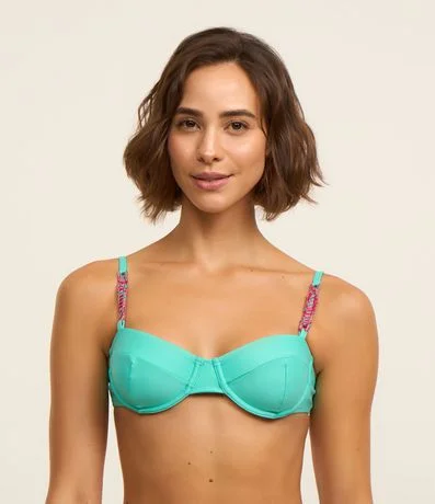 Ref: Peça avulsa de biquíni feminino, modelo top meia taça, confeccionado em microfibra e com alças de tererê colorido. Peça possui alças reguláveis e amarração nas costas.