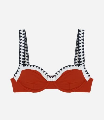 Ref: Biquíni top feminino confeccionado em microfibra, no modelo meia taça. Possui aro, bojo, alças largas e bordado zig zag.
