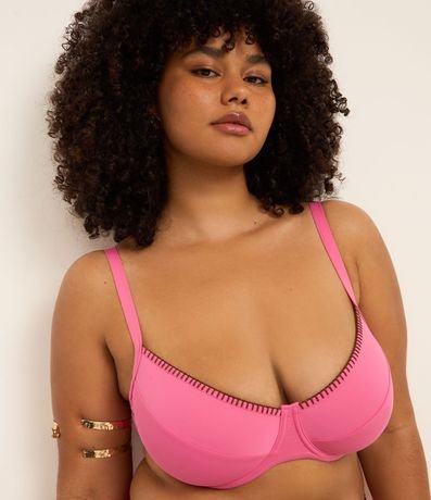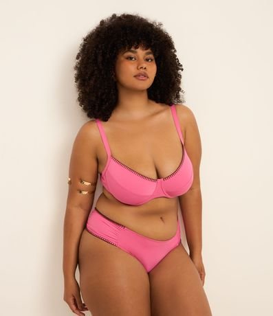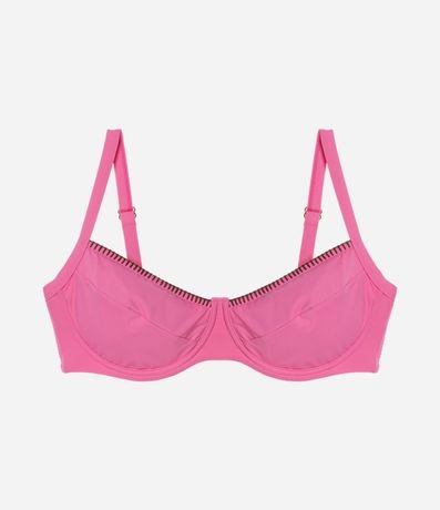 Ref: Peça avulsa de biquíni confeccionada em microfibra sem estampa. O top meia taça tem alças reguláveis e detalhe de crochê contrastante.