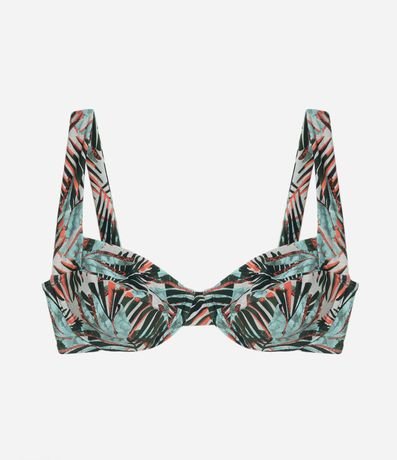 Biquíni Top Meia Taça em Microfibra com Folhagens Estampados