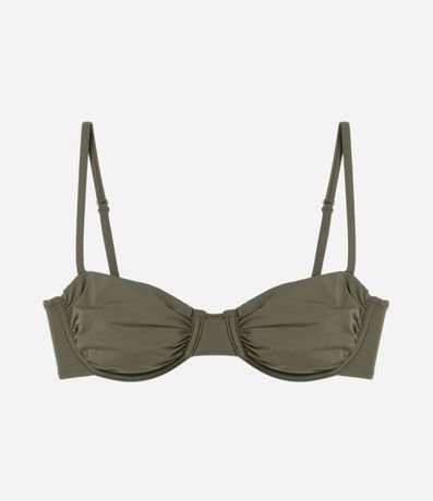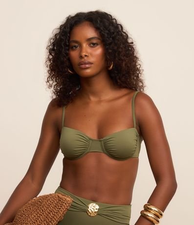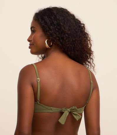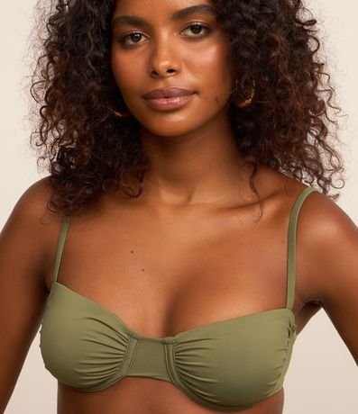Ref: Top de biquíni confeccionada em microfibra sem estampa. A peça tem busto meia taça franzido, alça fina ajustável e amarração nas costas.