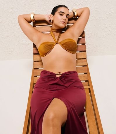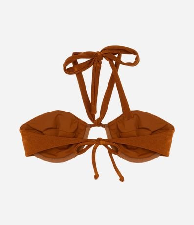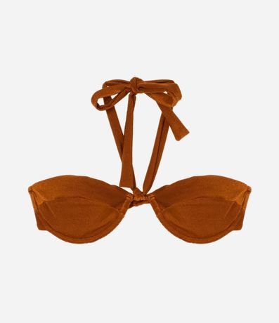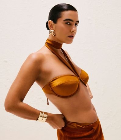 Peça única de biquíni top meia taça, confeccionado em microfibra, com amarração no pescoço e nas costas. Peça com texturizada.