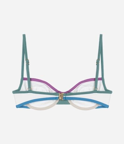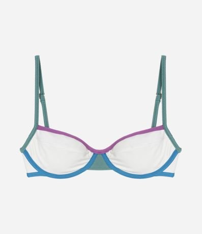 Ref: Peça avulsa de biquíni confeccionada em microfibra sem estampa. O top modelo meia taça tem alças reguláveis, fecho nas costas e vieses contrastantes.