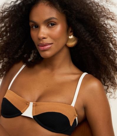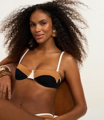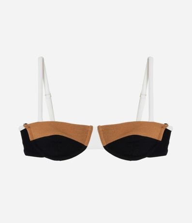 Ref: Top de biquíni confeccionado em microfibra texturizada. Modelo meia taça com aro, alças ajustáveis e design color block, garantindo sustentação, conforto e estilo para compor looks modernos de moda praia.