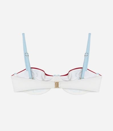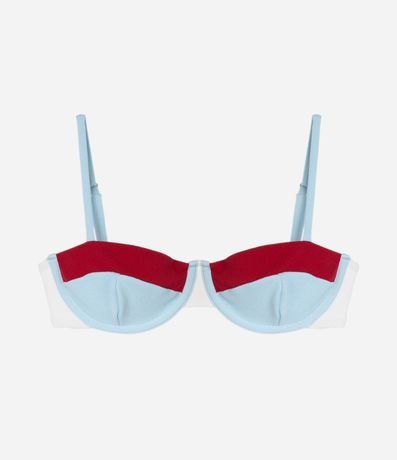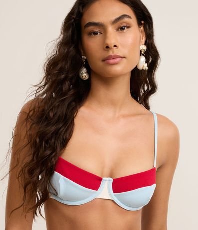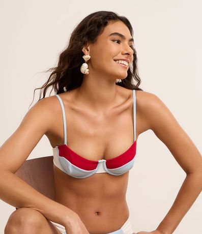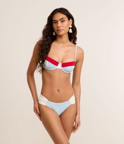 Ref: Peça avulsa de biquíni confeccionada em microfibra texturizada e sem estampa. O top meia taça tem alças reguláveis, aro, fechamento nas costas e blocos de cores.