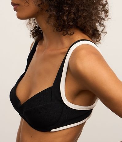 Ref: Peça avulsa de biquíni confeccionada em microfibra sem estampa e texturizada. O top meia taça tem alças fixas (sem regulagem), fecho nas costas e detalhes contrastantes.