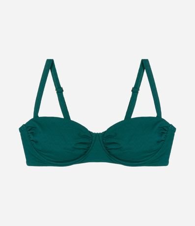 Ref: Peça avulsa de biquíni confeccionada em microfibra texturizada e sem estampa. O top meia taça tem alças largas reguláveis e franzido no busto.