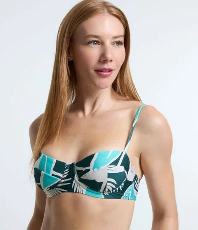 Ref: Top de biquíni, confeccionado em poliamida, com estampa de folhagens. Top modelo meia taça, com aro, alças finas ajustáveis e fechamento nas costas.