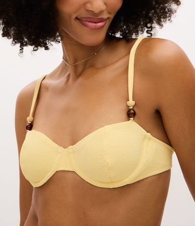 Biquíni Top Meia Taça Texturizado com Recorte e Aviamento nas Alças
