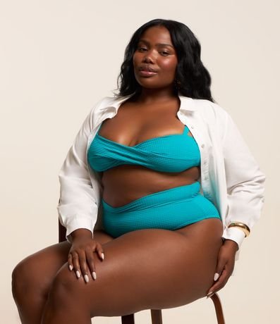 Ref: Biquíni top plus size de modelo reto torcido, com bojo e confeccionado em poliamida. Possui texturinha, alças reguláveis e fechamento por amarração nas costas.