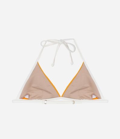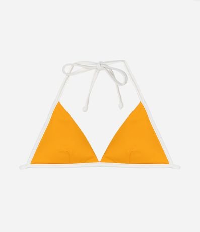 Peça avulsa de biquíni confeccionada em microfibra sem estampa. O top modelo triangulo fixo tem tiras para amarrar no pescoço, tira regulável nas costas, bojos removíveis e viés contrastante.