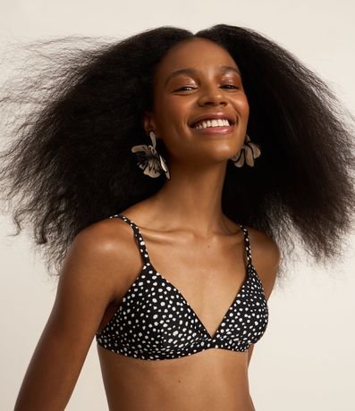 Ref: Peça avulsa de biquíni confeccionada em microfibra com estampa de bolinhas. O top tem busto triangular, bojos removíveis, alças paralelas reguláveis e amarração nas costas.