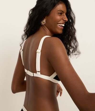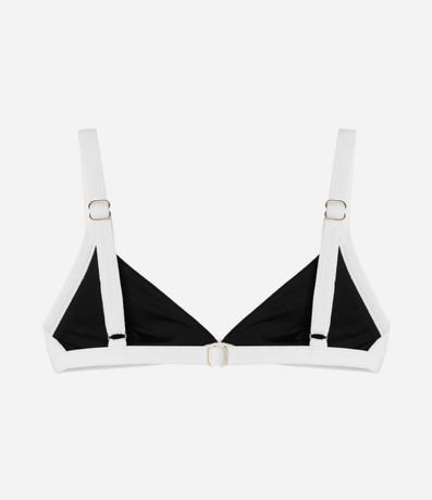 Ref: Peça avulsa de biquíni confeccionada em microfibra texturizada sem estampa. O top tem formato triangular fixo, bojos removíveis, vieses contrastantes e tiras reguláveis - tanto as alças quanto nas costas.