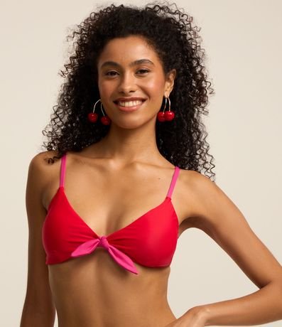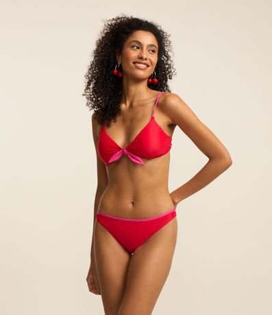 Biquíni top triangulo microfibra com amarração e alças coloridas.