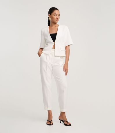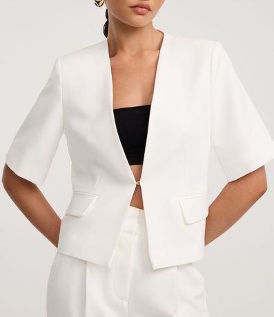 Ref: Blazer alfaiatado de mangas curtas, com lapelas e fechamento interno.