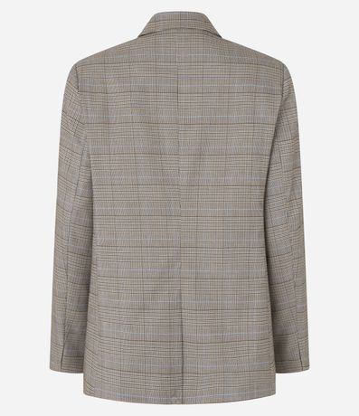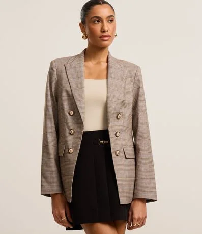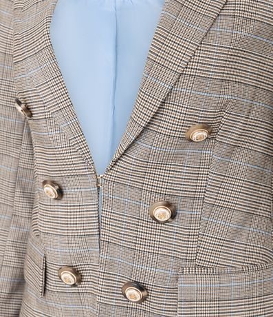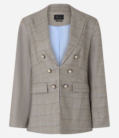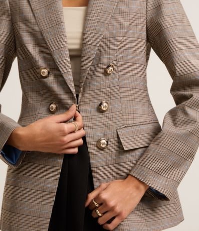 Ref: Blazer feminino Alfaiatado com gola lapela, transpassado, botões com brasão, bolso com lapela, manga longa e estampa xadrez.