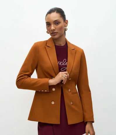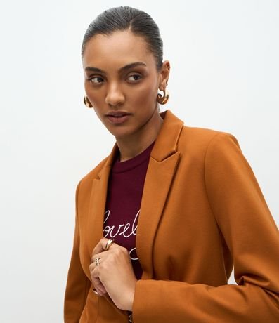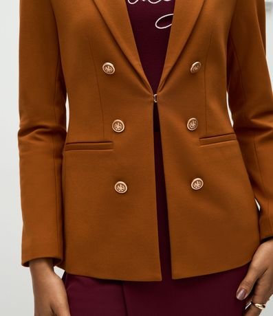 Ref: Blazer feminino, confeccionado em ponto roma, com gola lapela, fechamento em ganchinhos, botões frontais e recortes.