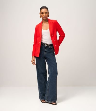 Blazer Alfaiatado em Ponto Roma com Botões Brasão