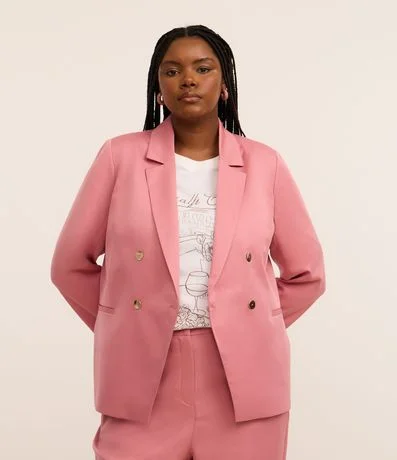 Ref: Blazer alfaiatado transpassado com quatro botões frontais e forro.