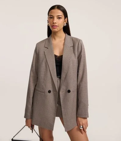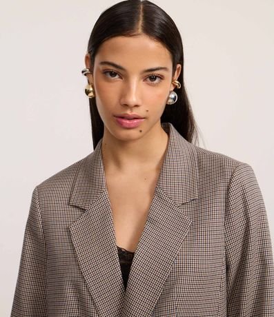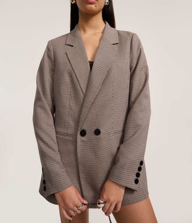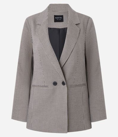 Blazer Alongado em Alfaiataria com Estampa Xadrez Pied de Poule