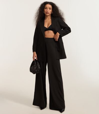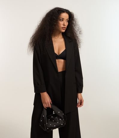 Blazer Alongado em Alfaiataria com Prega nas Mangas