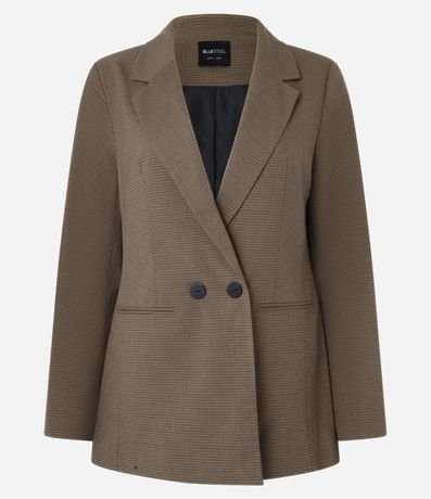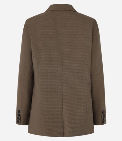 Ref: Blazer alongado em alfaiataria, confeccionado em viscose certificada, estampa xadrez e botões frontais e nos punhos.