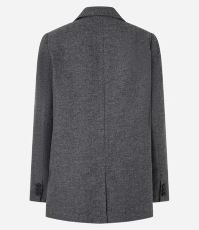 Blazer alongado em polivelour com viscose certificada, xadrez e com dois botões para fechamento frontal.