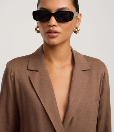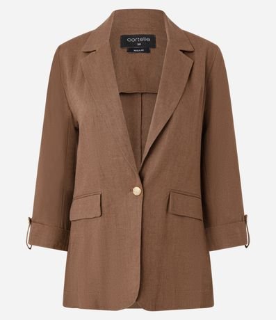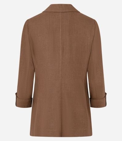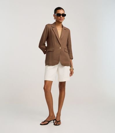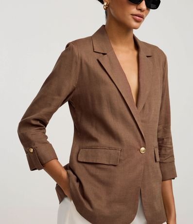 Blazer alongado confeccionado em viscose com 10% de linho, com lapelas na gola, abotoamento único, metalizado punhos dobrados com martingales - tiras de tecido - com botões metalizados. Peça sem forro. Este produto possui viscose o certificada em sua composição, além de ter sido produzido através de processos mais sustentáveis, sendo ambientalmente mais responsável.