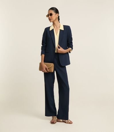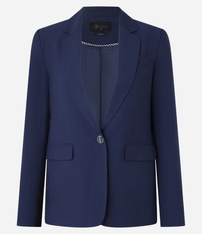 Ref: Blazer comfort de estrutura alfaiatada, com lapelas na gola, botão único diferenciado com detalhes metalizados e efeito martelado e lapelas frontais que simulam bolsos. Este produto possui viscose certificada em sua composição, sendo ambientalmente mais responsável.
