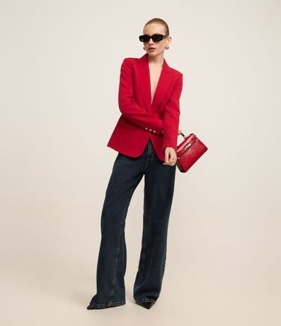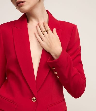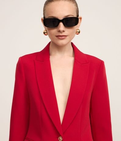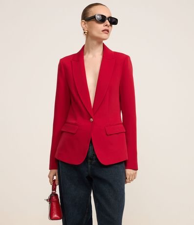 Blazer em Crepe com Botão Único e Bolso com Lapela