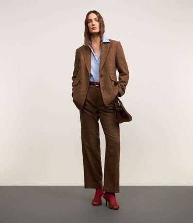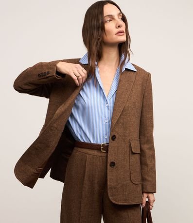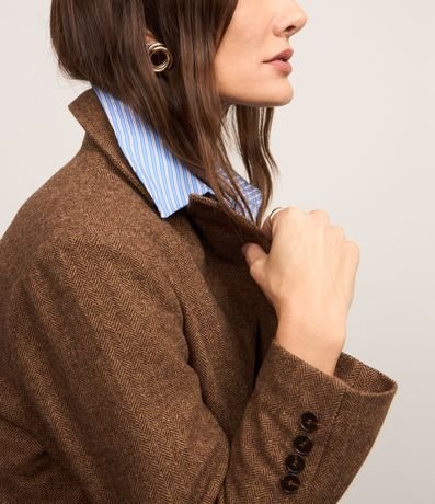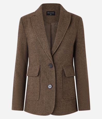 Ref: Blazer confeccionado polivelour com lapelas na gola, botões frontais para fechamento e bolsos frontais com lapelas. Possui padronagens na trama de tecido.