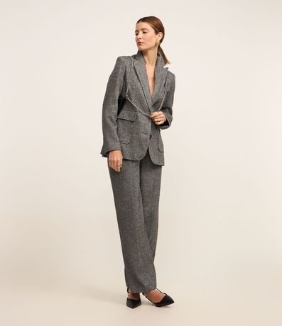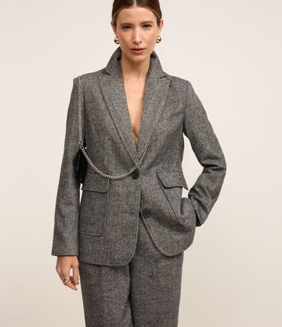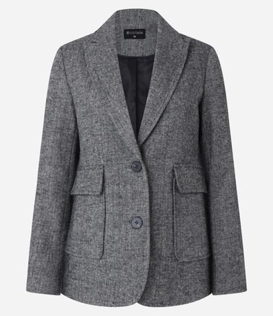 Blazer em Polivelour Quentinho com Bolsos e Espinha de Peixe