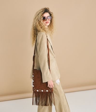 Blazer em Suede com Lapela e Bolsos Laterais