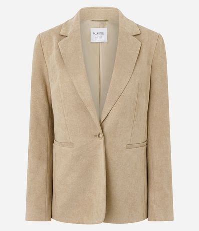 Blazer feminino em suede, com lapela clássica, fechamento frontal por botão único e bolsos laterais embutidos. Possui recortes estruturados, forro interno e mangas longas com acabamento limpo, garantindo caimento alinhado e adequado para composições casuais ou de trabalho.