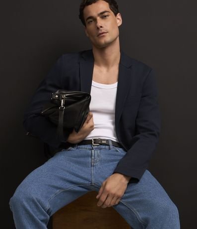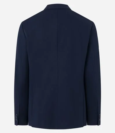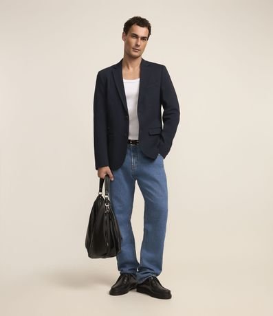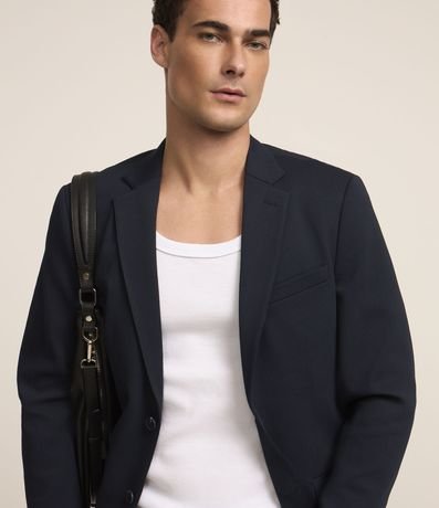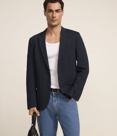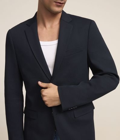 Blazer masculino em tricoline com gola clássica, modelo um pouco mais ajustado e com leve textura.