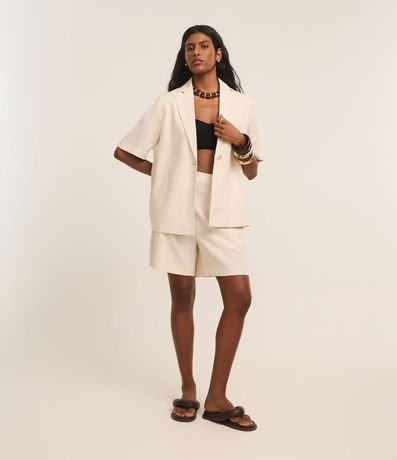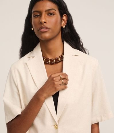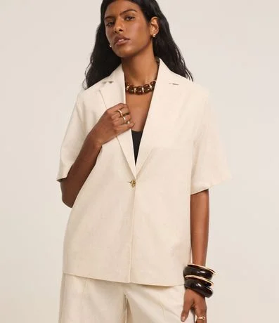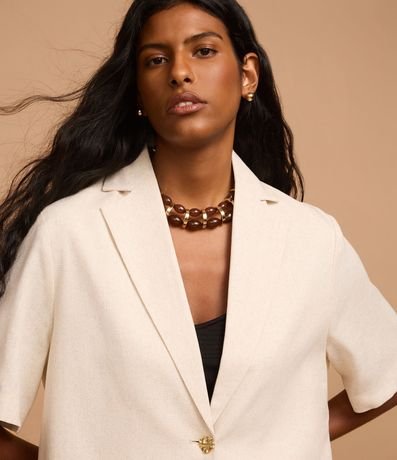 Blazer de mangas curtas, confeccionado me viscolinho, com lapela gola e abotoamento simples. Este produto possui viscose certificada em sua composição, sendo ambientalmente mais responsável.