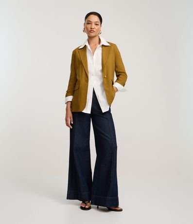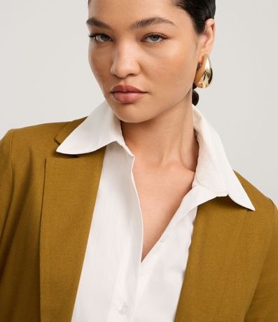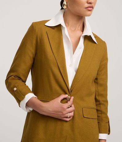 Ref: Blazer confeccionado em viscolinho, com lapelas na gola, botão frontal, faixas nos punhos e bolsos frontais falsos. Este produto possui viscose certificado em sua composição, além de ter sido produzido através de processos mais sustentáveis, sendo ambientalmente mais responsável.