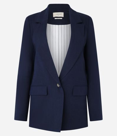 Ref: Blazer feminino confeccionado em viscose e linho, com fechamento por botão único e lapelas na frontal.